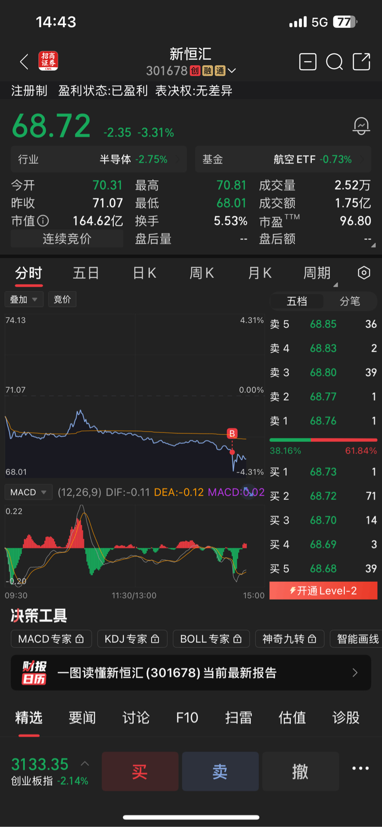$新恒汇(SZ301678)$ 68.26建了个底仓,懵逼一把