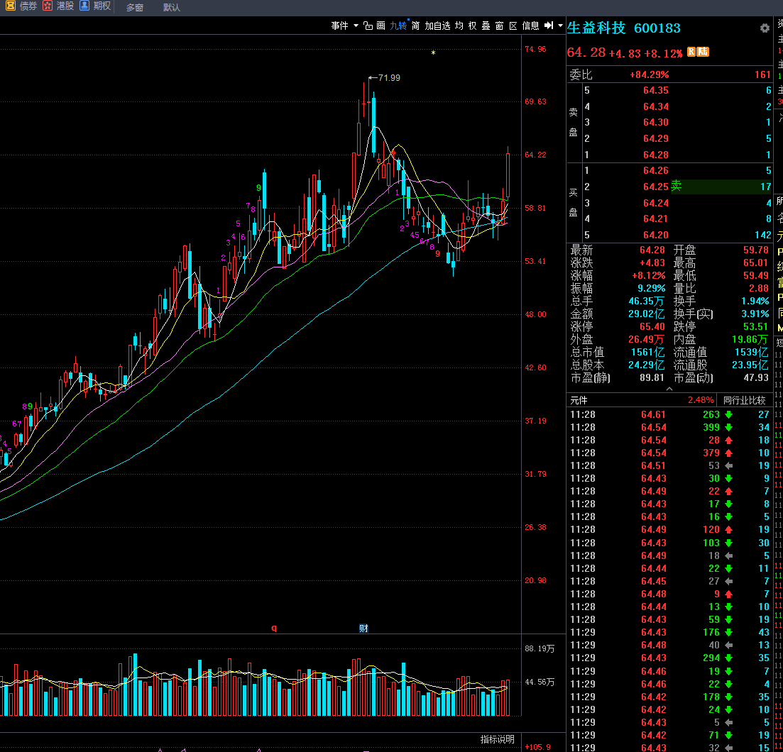 和新恒汇合作的生益科技目前涨幅8。13%,现价64。28,最低3。4涨幅二十倍。市值。1561亿。新恒汇还有上涨空间。拉升就抛。