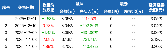 新恒汇:融资净买入121.65万元,融资余额3.05亿元(12-11)