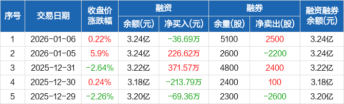 新恒汇:融资净偿还36.69万元,融资余额3.24亿元(01-06)