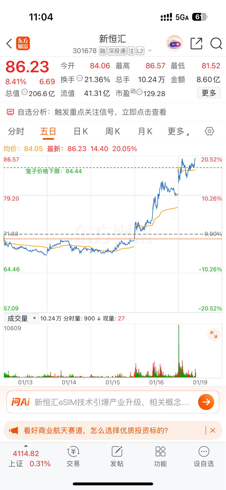 $新恒汇(SZ301678)$ 想多买点,结果没买上
