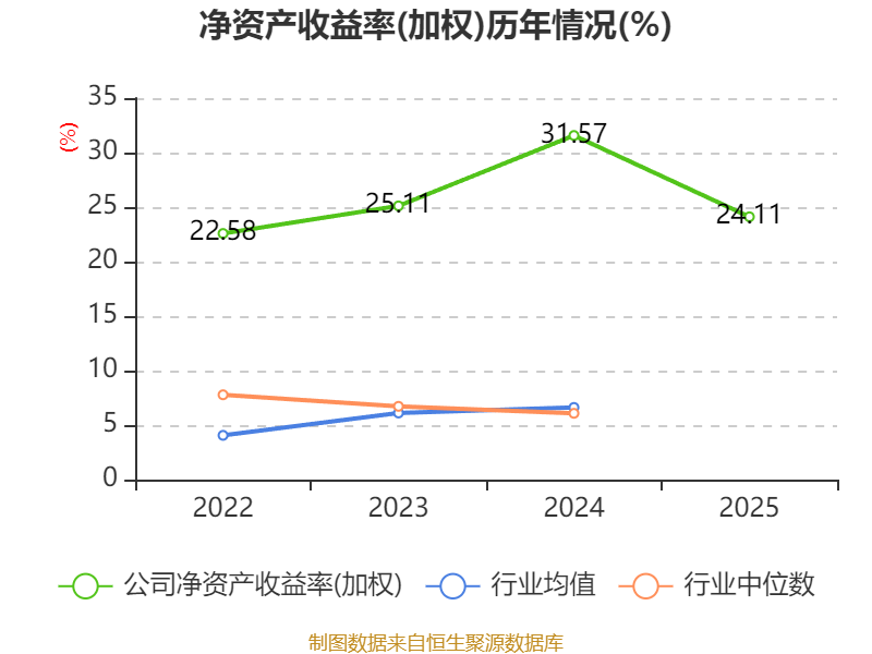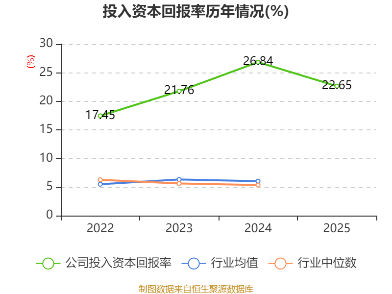 数据显示,2025年公司加权平均净资产收益率为24.11%,较上年同期下降7.46个百分点。公司2025年投入资本回报率为22.65%,较上年同期下降4.19个百分点。