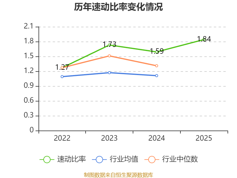 2025年,公司流动比率为2.25,速动比率为1.84。