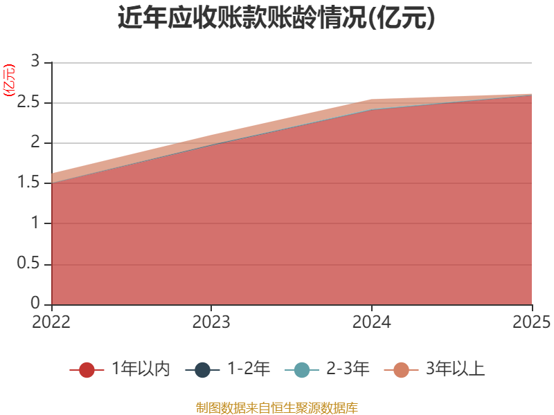 从应收账款账龄结构来看,截至2025年末,公司账龄在1年以内的应收账款余额为2.59亿元,较上年末增长1793.94万元。