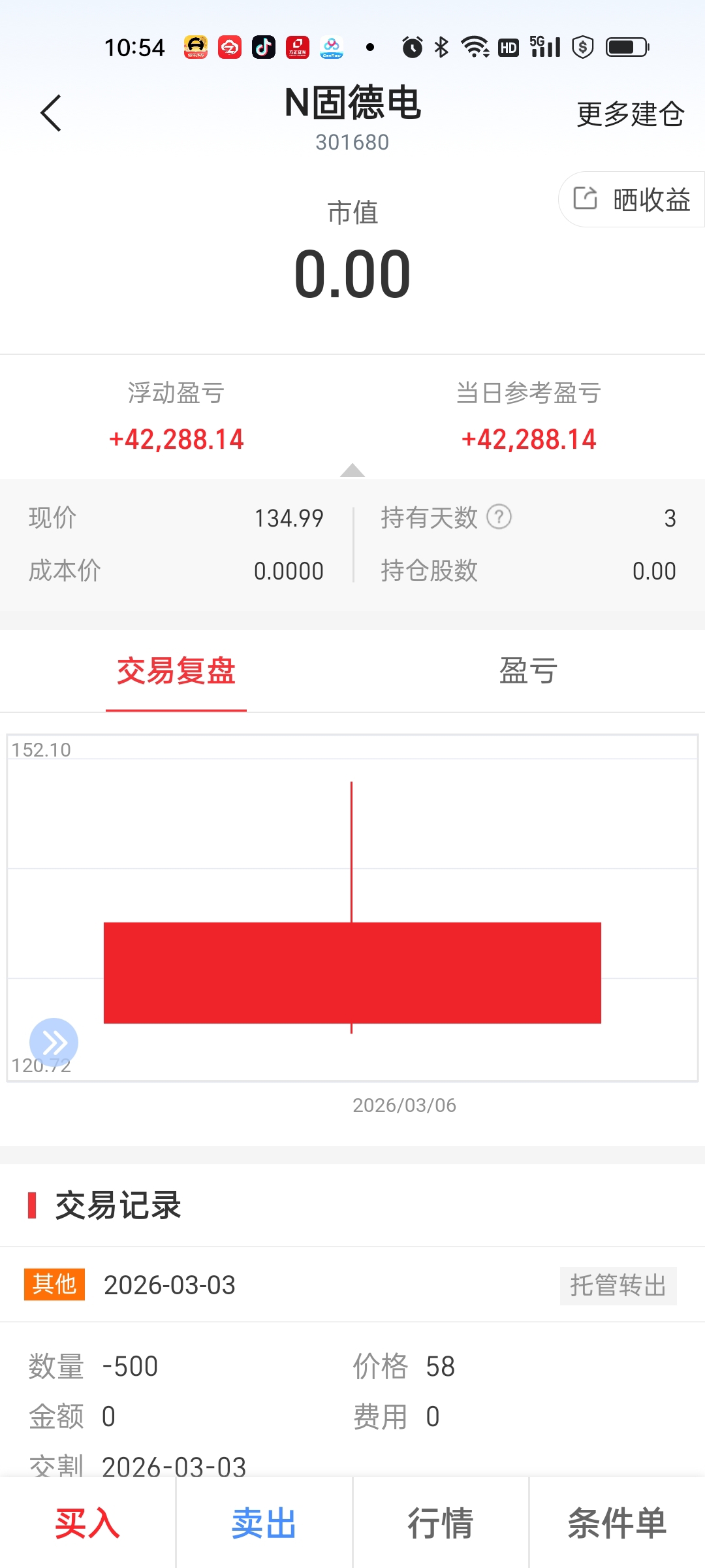 142.66全出了中签的500股,挣了42288,到手了