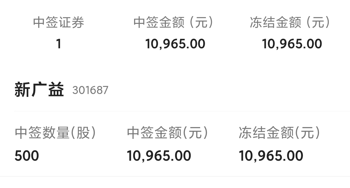 $新广益(SZ301687)$ 我这个是不是已经扣款成功了?第一次中签,谢谢