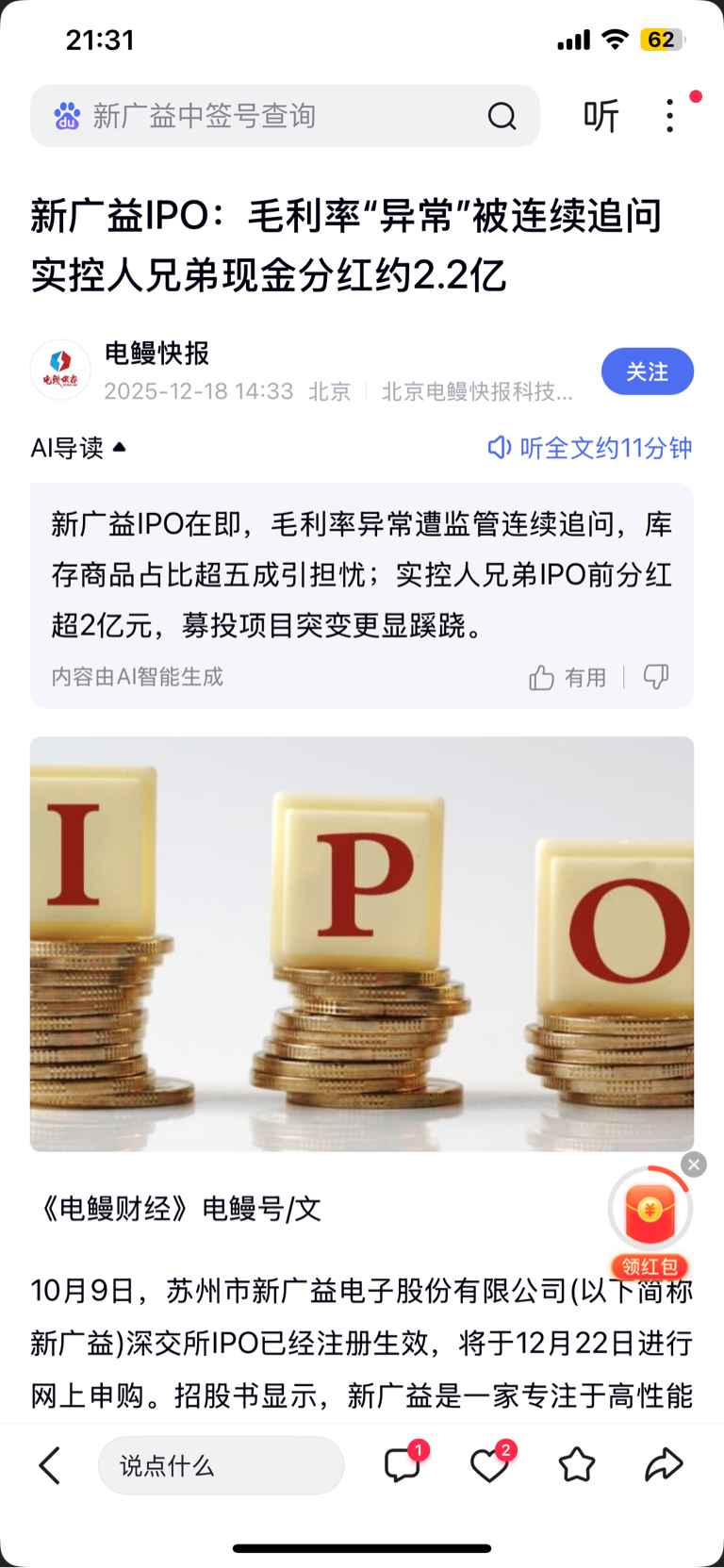 $新广益(SZ301687)$ 一小时发一条,只给未中签者提个醒,走势参考一个月前大明电子,都是上市前清仓式分红,买入者人均亏30%