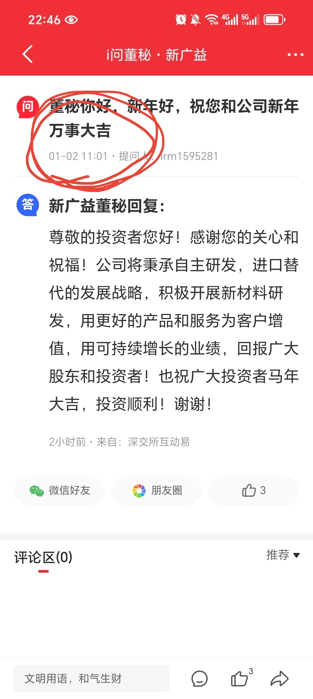 $C新广益(SZ301687)$ 这个董秘挺有意思的,是不是被老板约谈批评了?!今天回复1月2号祝福提问,自言自语释放正能量。