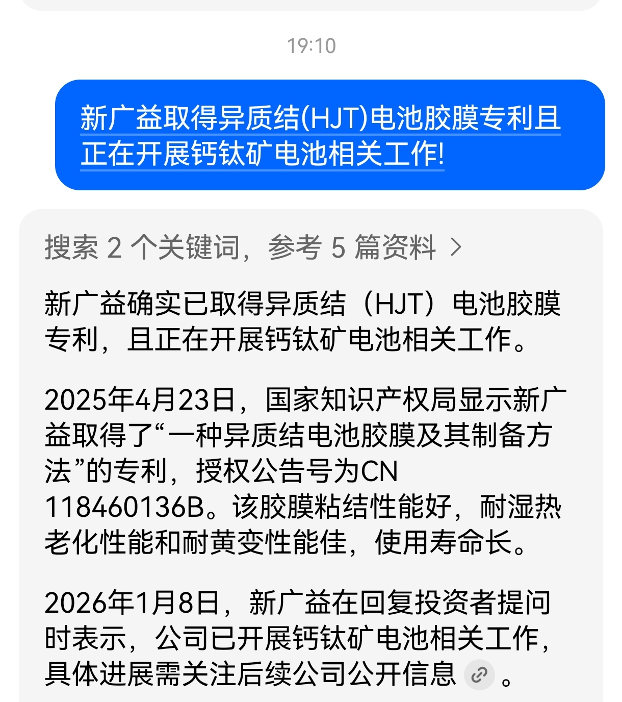 $新广益(SZ301687)$ 异质结(HJT)电池胶膜专利且正在开展钙钛矿电池相关工作!