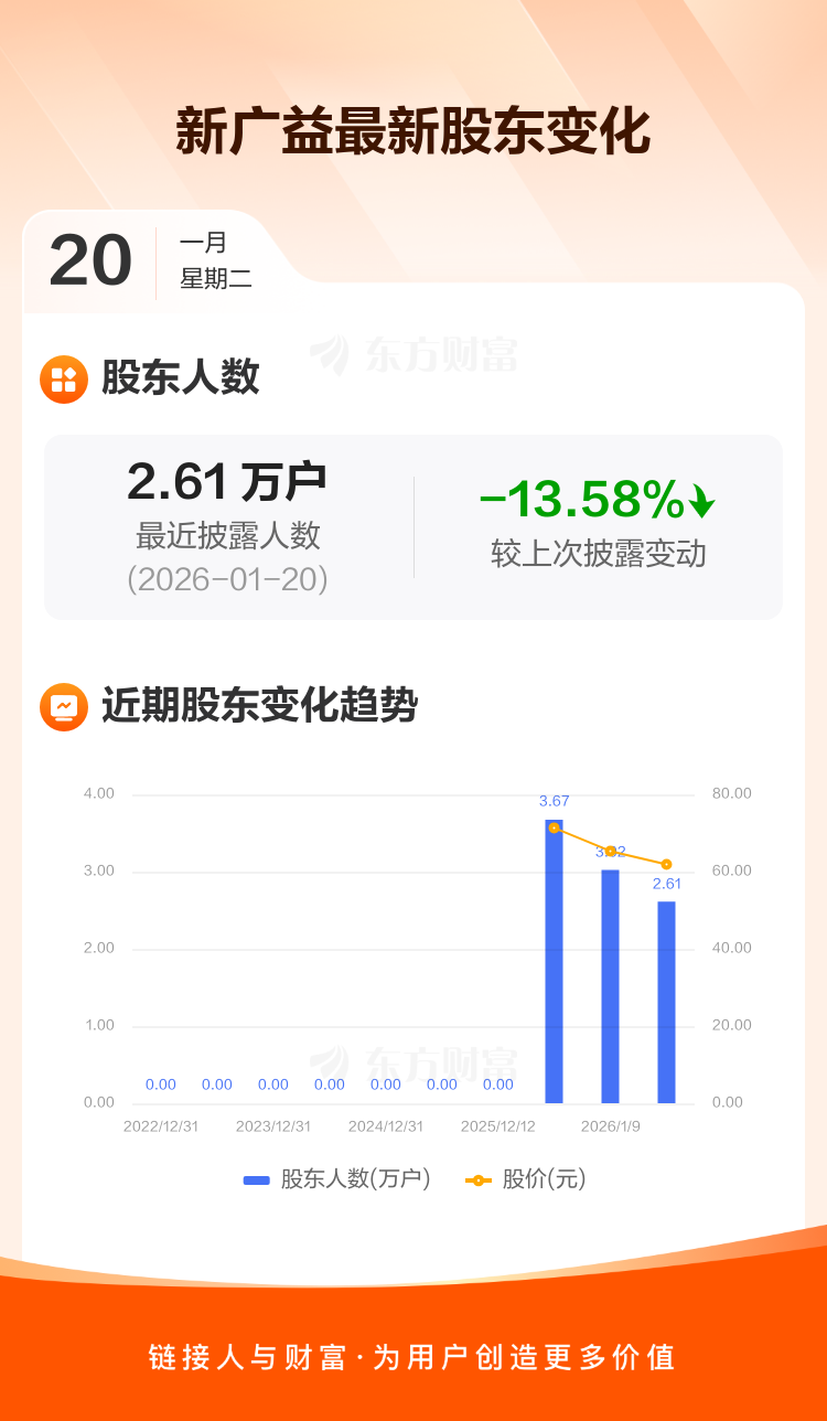 新广益:截至1月20日最新股东户数2.61万户,较上期减少13.58%
