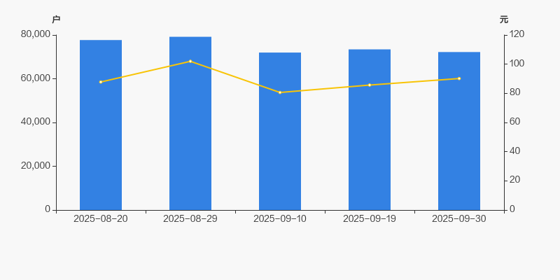 截至2025年9月30日,公司最新总股本为26.72亿股,其中流通股本为5.86亿股。户均持有流通股数量由上期的7981股上升至8116股,户均流通市值73.17万元。