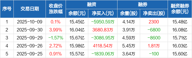 中航成飞:融资净偿还5950.59万元,融资余额15.45亿元(10-09)