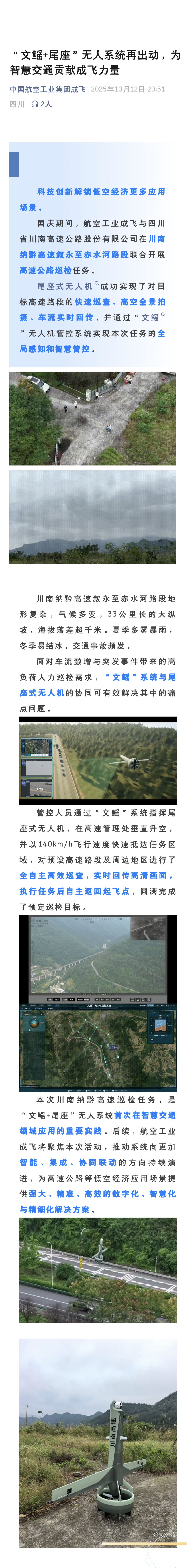 $中航成飞(SZ302132)$ “文鳐+尾座”无人系统再出动,为智慧交通贡献成飞力量。