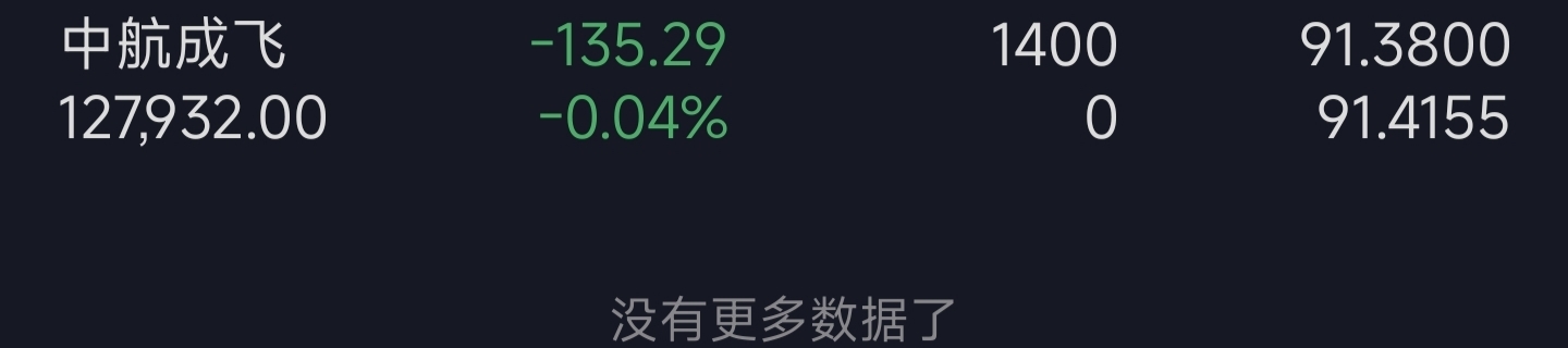$中航成飞(SZ302132)$ 我替我一个朋友问一下,这还有希望吗今天