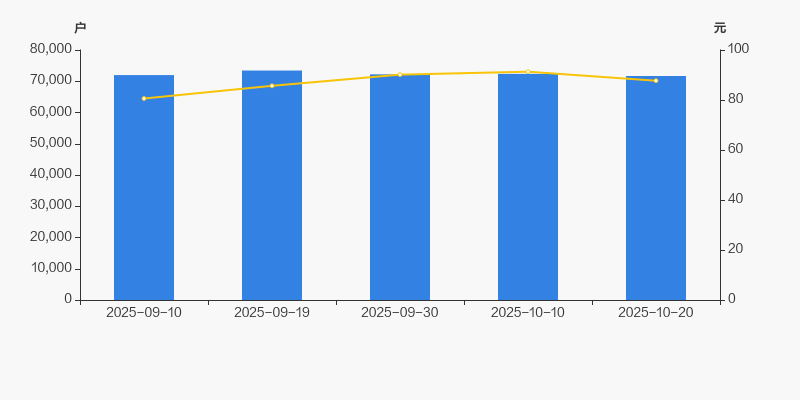 截至2025年10月20日,公司最新总股本为26.72亿股,其中流通股本为5.86亿股。户均持有流通股数量由上期的8099股上升至8177股,户均流通市值71.72万元。