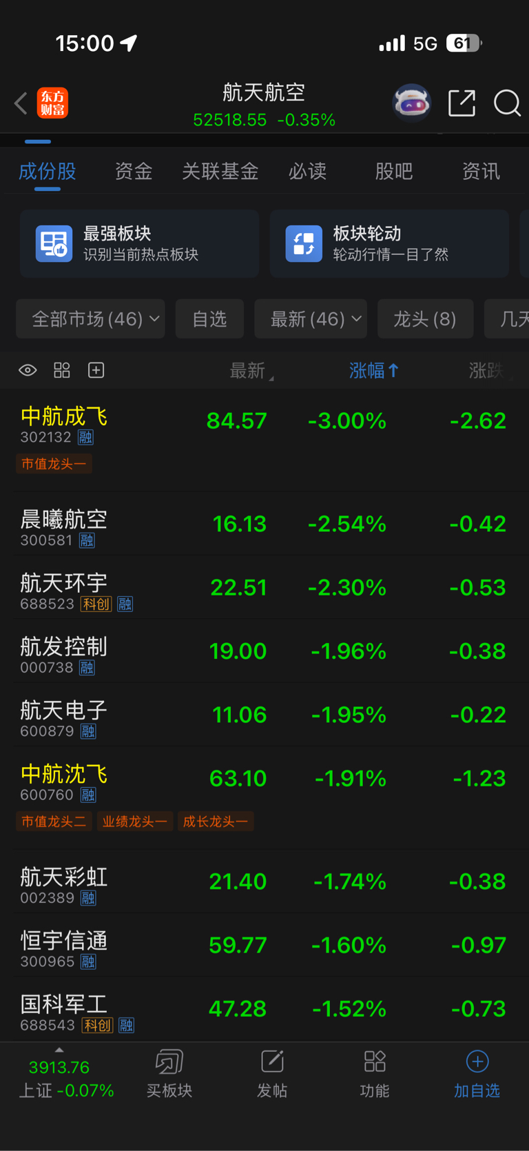 $中航成飞(SZ302132)$ 你有什么脸跌三个点,板块倒数第一,你要当领跌龙头吗?