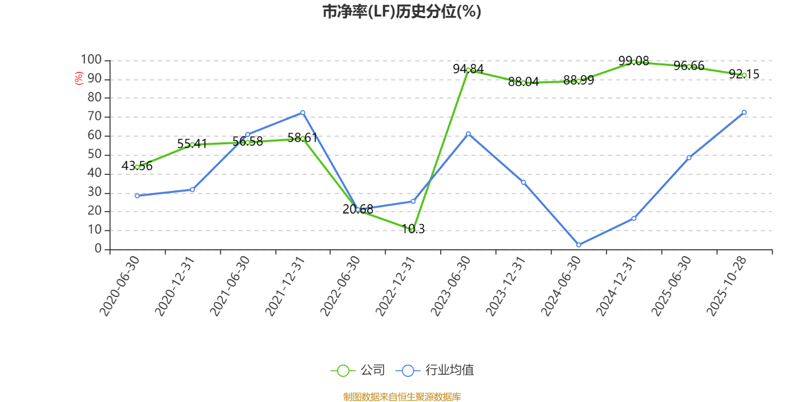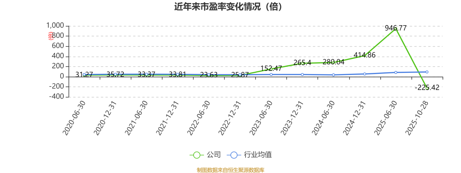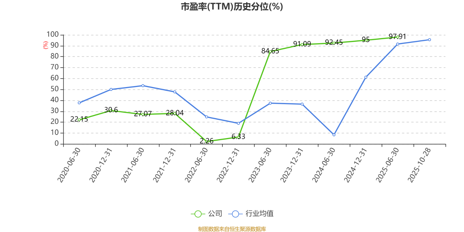 市盈率、市净率为负时,不显示当期分位数,会导致折线图中断。