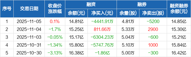 中航成飞:融资净偿还4441.91万元,融资余额14.81亿元(11-05)
