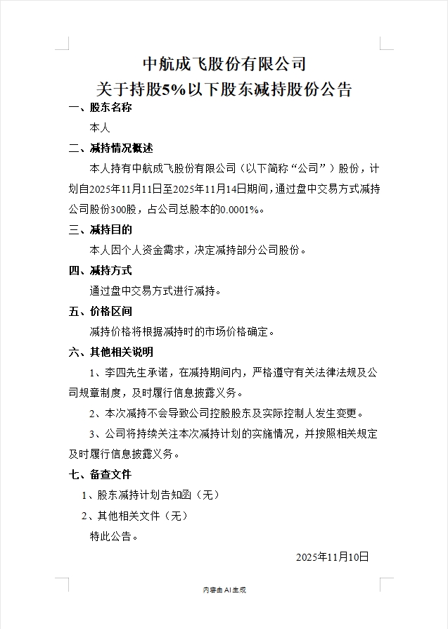 $中航成飞(SZ302132)$ 卖300股参加双十一活动