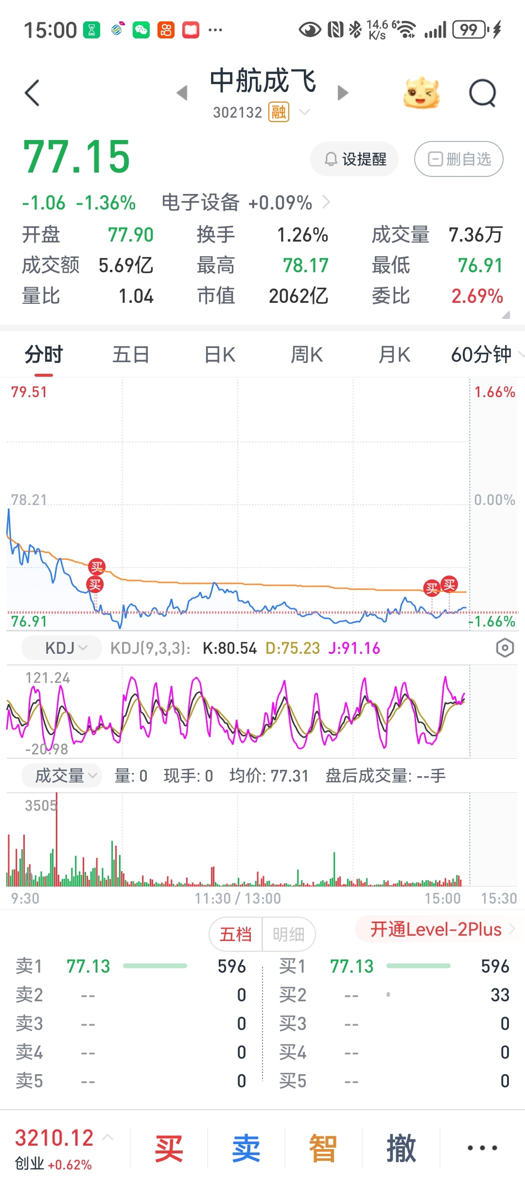 $中航成飞(SZ302132)$ 77.06是年线支点,触点必反弹!