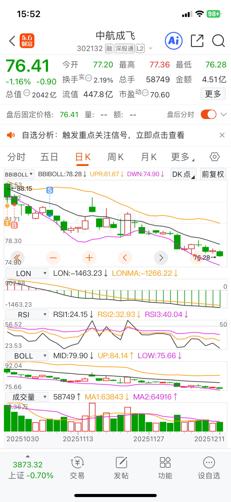 $中航成飞(SZ302132)$ 主力不是人,80的筹码都不动的,你快点到70反抽75 80的筹码就卖了