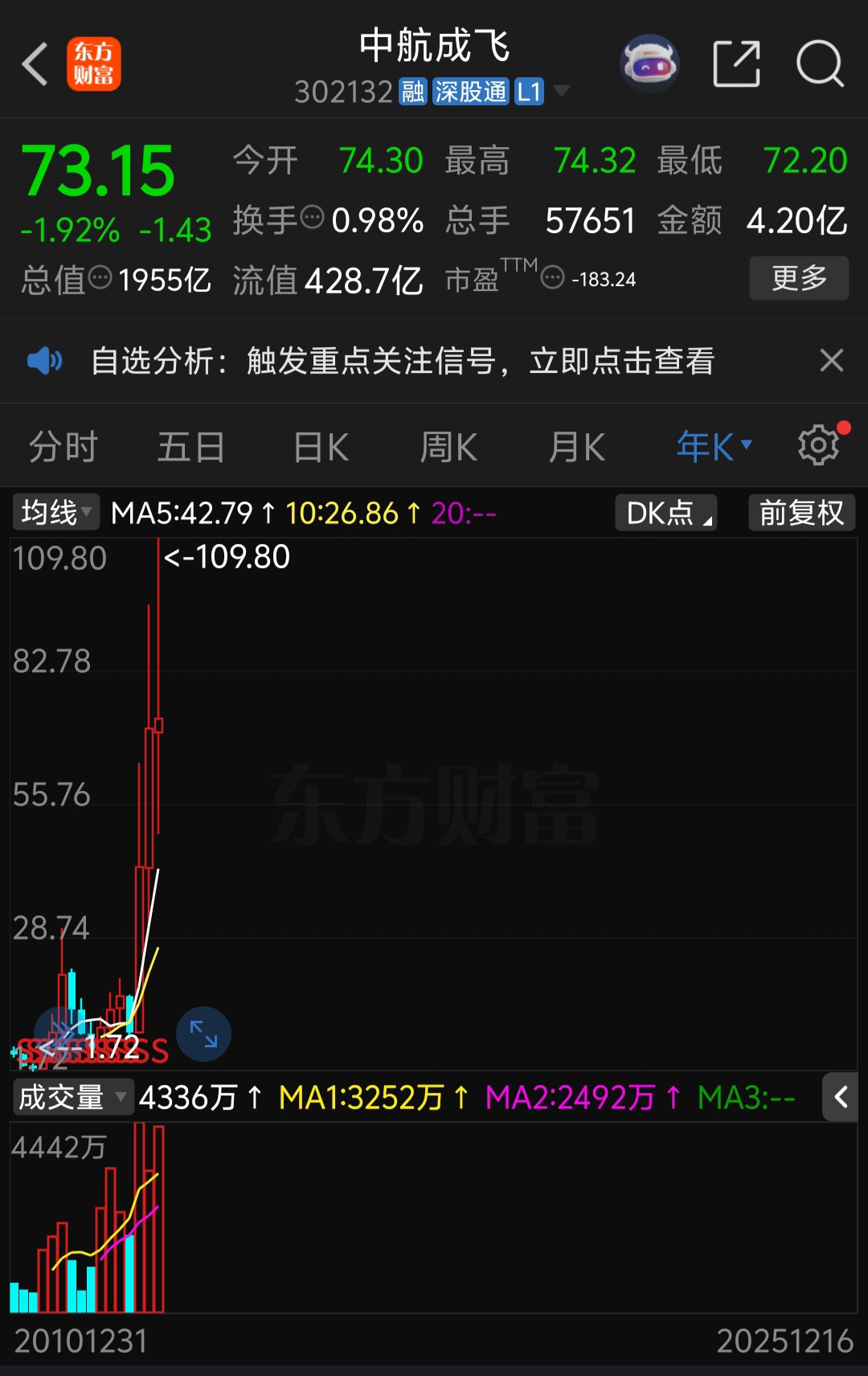 $中航成飞(SZ302132)$ 年线红着呢,各位接盘侠没什么可委屈的