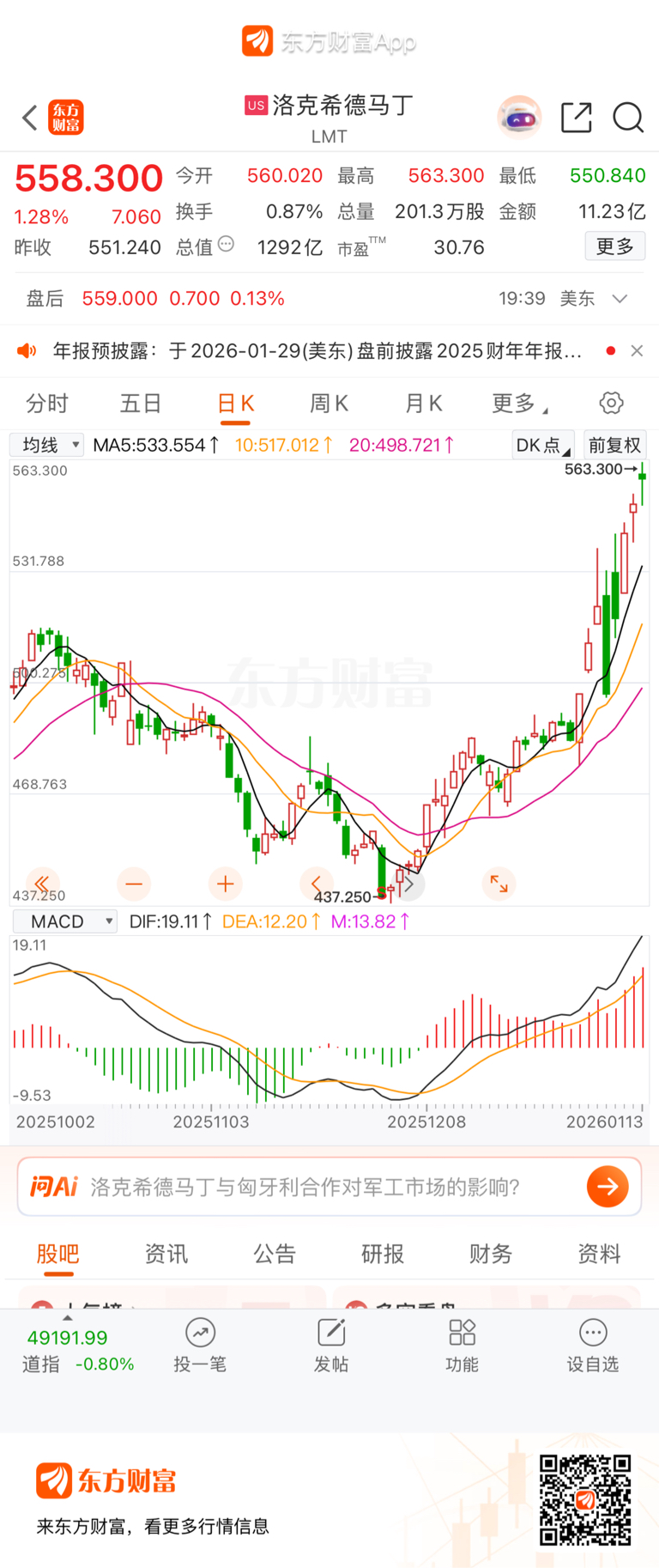 美股收跌,洛马上行。商业航天大涨你不跟,大跌当先锋,你还是你吗?