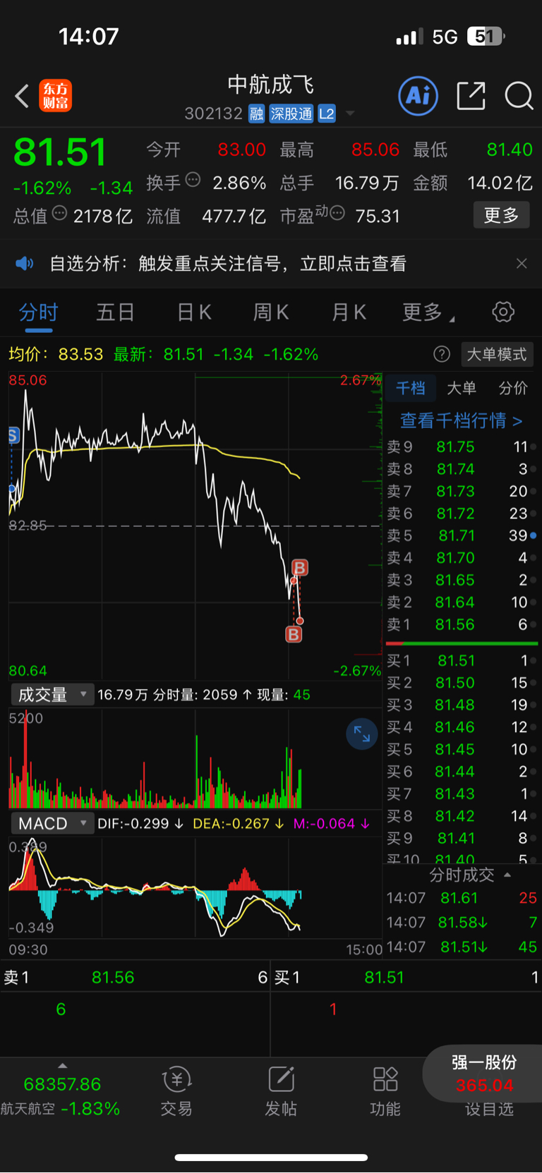 我胡汉三又回来了啦,今日每跌五毛加100股。