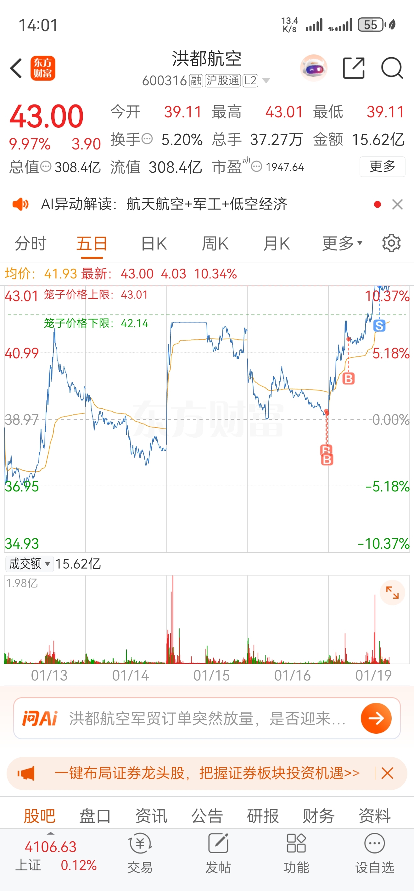 $中航成飞(SZ302132)$ 烂股,周五尾盘卖了成飞,进了洪都,都涨停了