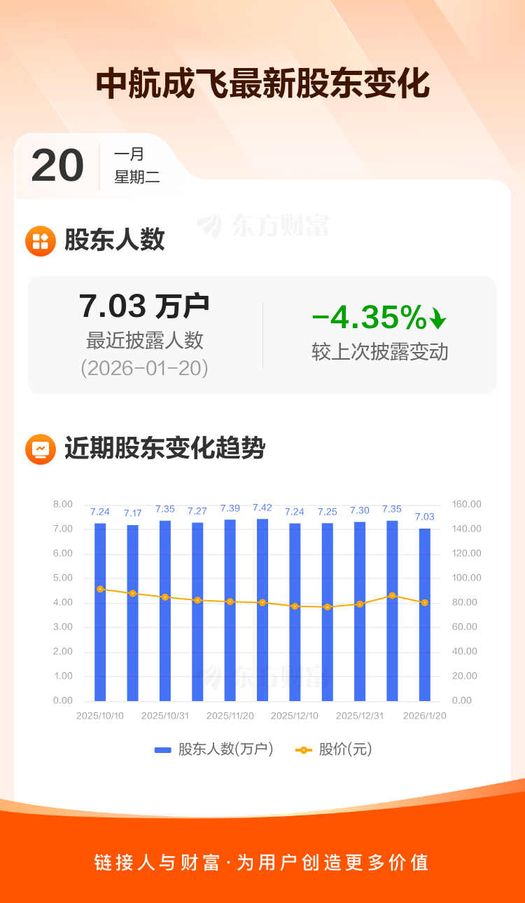 中航成飞:截至1月20日最新股东户数7.03万户,较上期减少4.35%