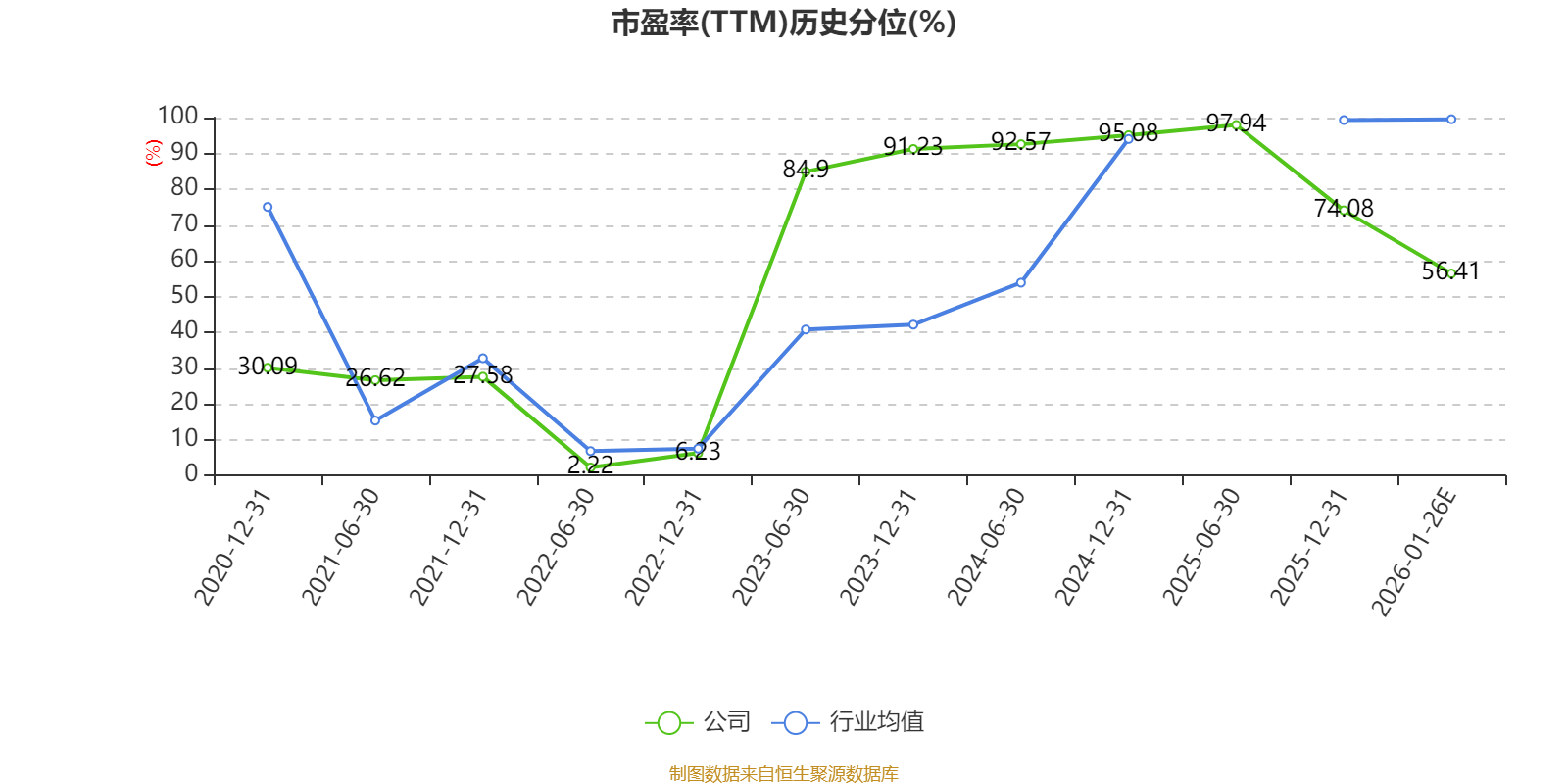 市盈率、市净率为负时,不显示当期分位数,会导致折线图中断。