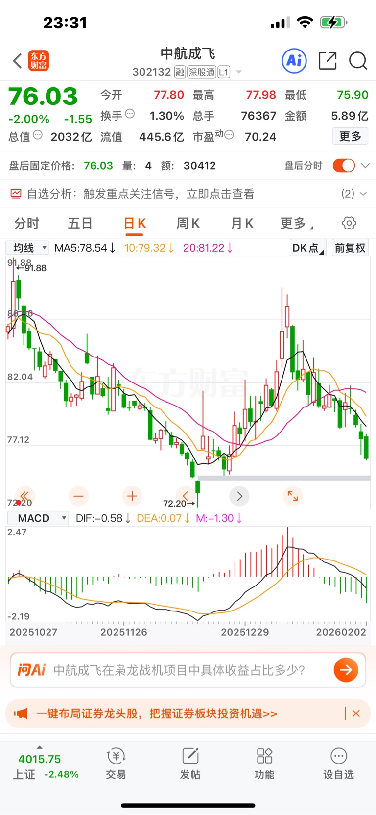 #社区牛人计划# $中航成飞(SZ302132)$ 疯狂杀跌,已到了梭哈的时候了。#收盘点评#