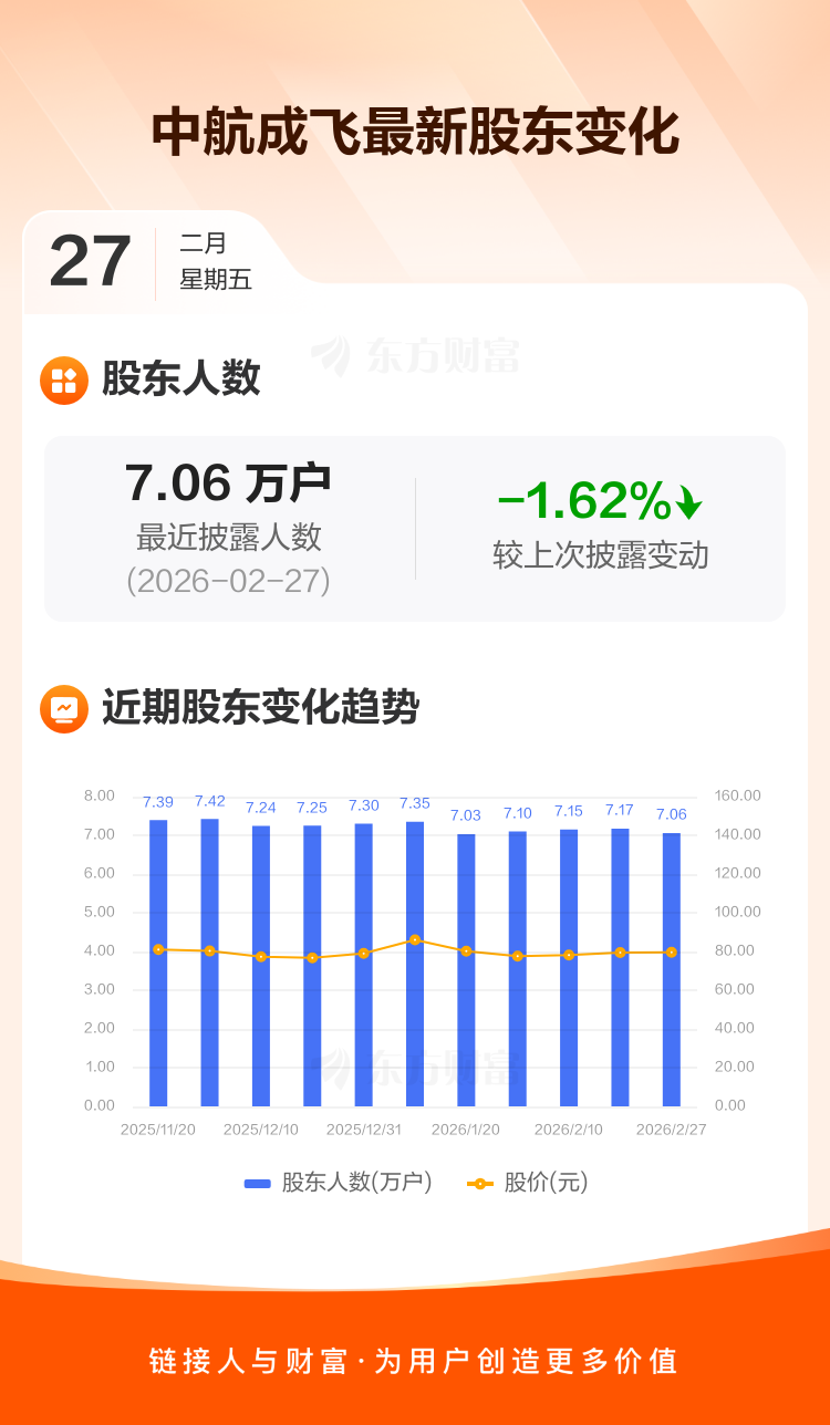 中航成飞:截至2月27日最新股东户数7.06万户,较上期减少1.62%