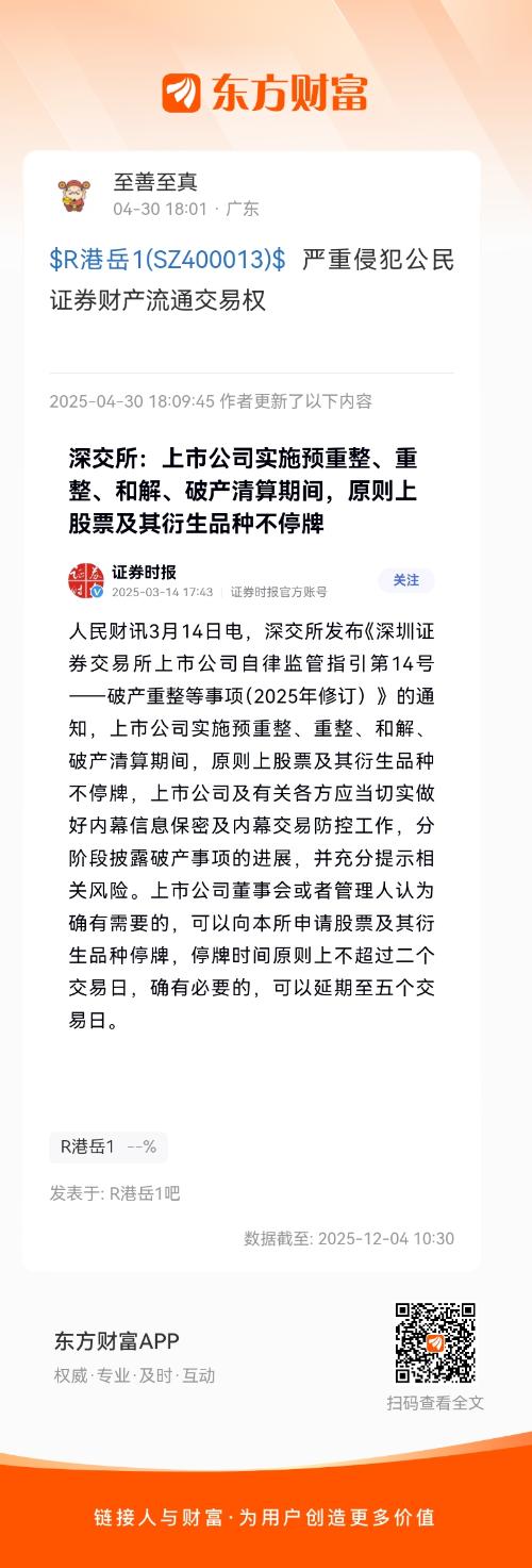 $R港岳1(SZ400013)$  严重侵犯公民证券财产流通交易权