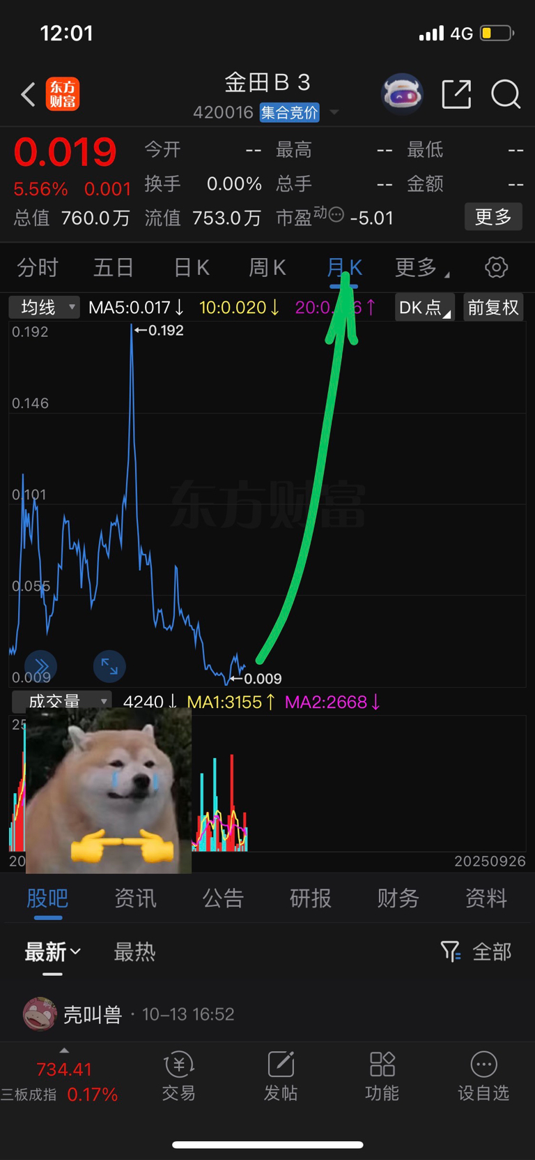 比特币110000美元一枚,世存量1990万枚,金田币0.018美元一枚,世存量8908万枚,即使金田币突破前高也是理所当然,币股以后都不会再发行,属于稀有品种。退市的币股,更是另类中的另类。只有有眼光的投资者才会挂涨停价买入。有一个兄弟金田A,A股牌位000003,一旦借壳前途无量。