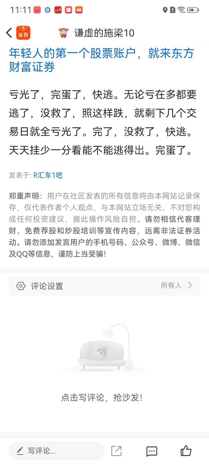 温馨提示: 1.根据《证券法》规定,禁止编造、传播虚假信息或者误导性信息,扰乱证券市场;2.用户在本社区发表的所有资料、言论等仅代表个人观点,与本网站立场无关,不对您构成任何投资建议。用户应基于自己的独立判断,自行决定证券投资并承担相应风险。《东方财富社区管理规定》