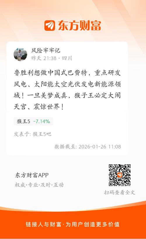 鲁胜利想做中国式巴费特,重点研发风电、太阳能太空光伏发电新能源领域!一旦美梦成真,猴子王必定大闹天宫、震惊世界!