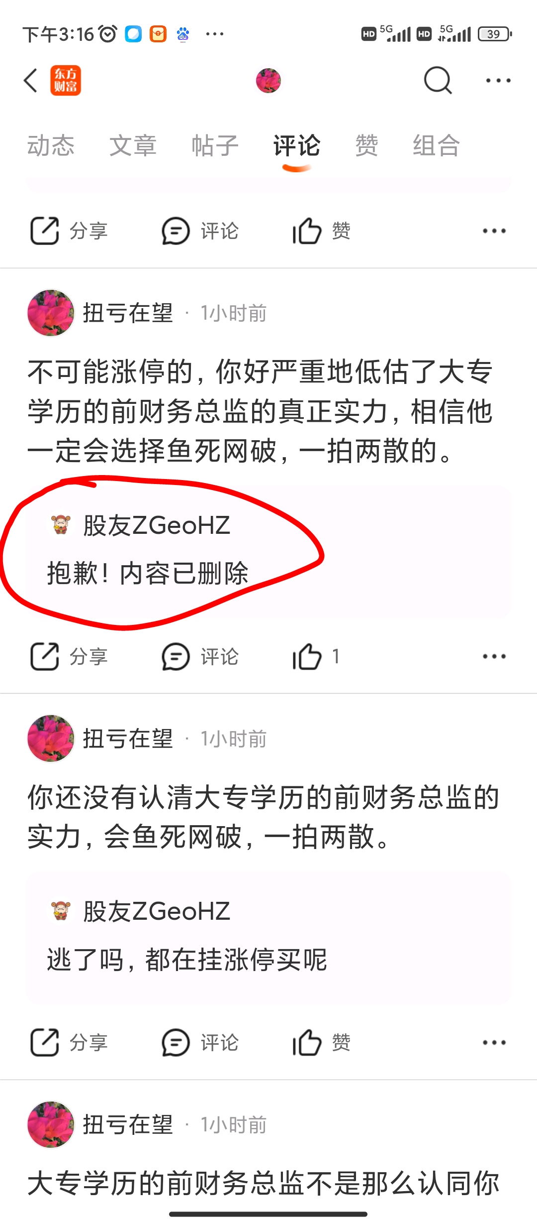 $天珑5(SZ400059)$ D条粉肠删帖了