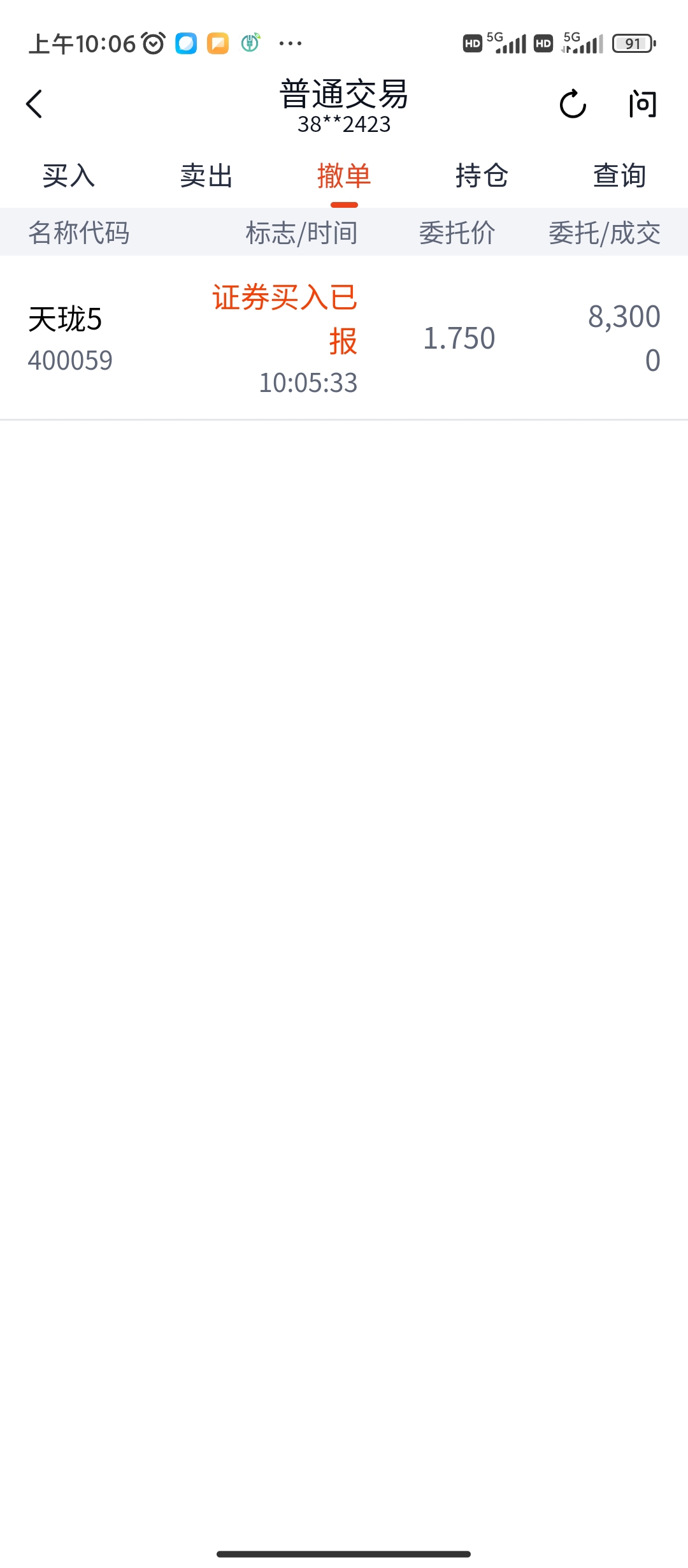 $天珑5(SZ400059)$ 能成交吗?