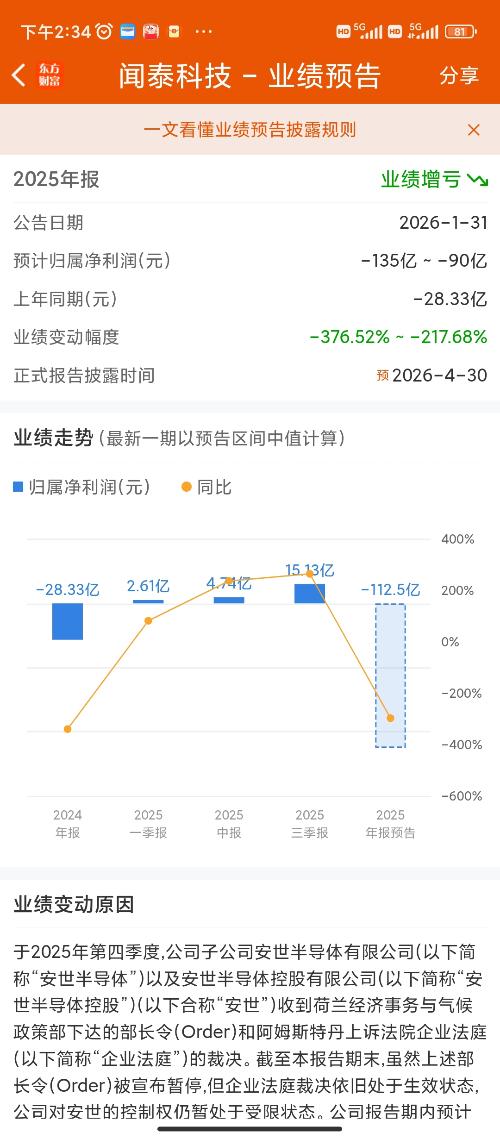 (二)由于安世控制权受限导致的一系列影响具有重大不确定性,尽管公司基于谨慎性原则尽可能合理估计了该因素对财务报表影响,但仍有可能发生业绩预告不够准确、或其他超出预期的情况,公司将与荷兰相关各方保持沟通,但沟通进展、结果仍存在不确定性。