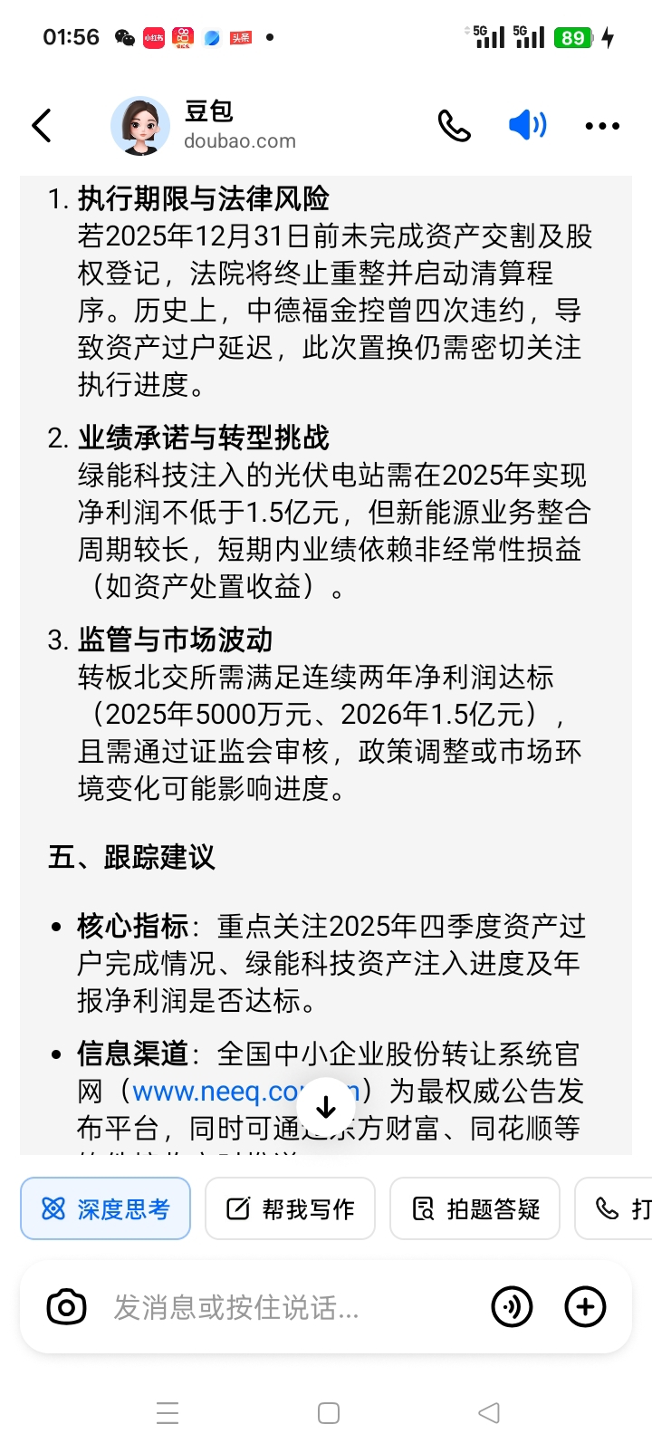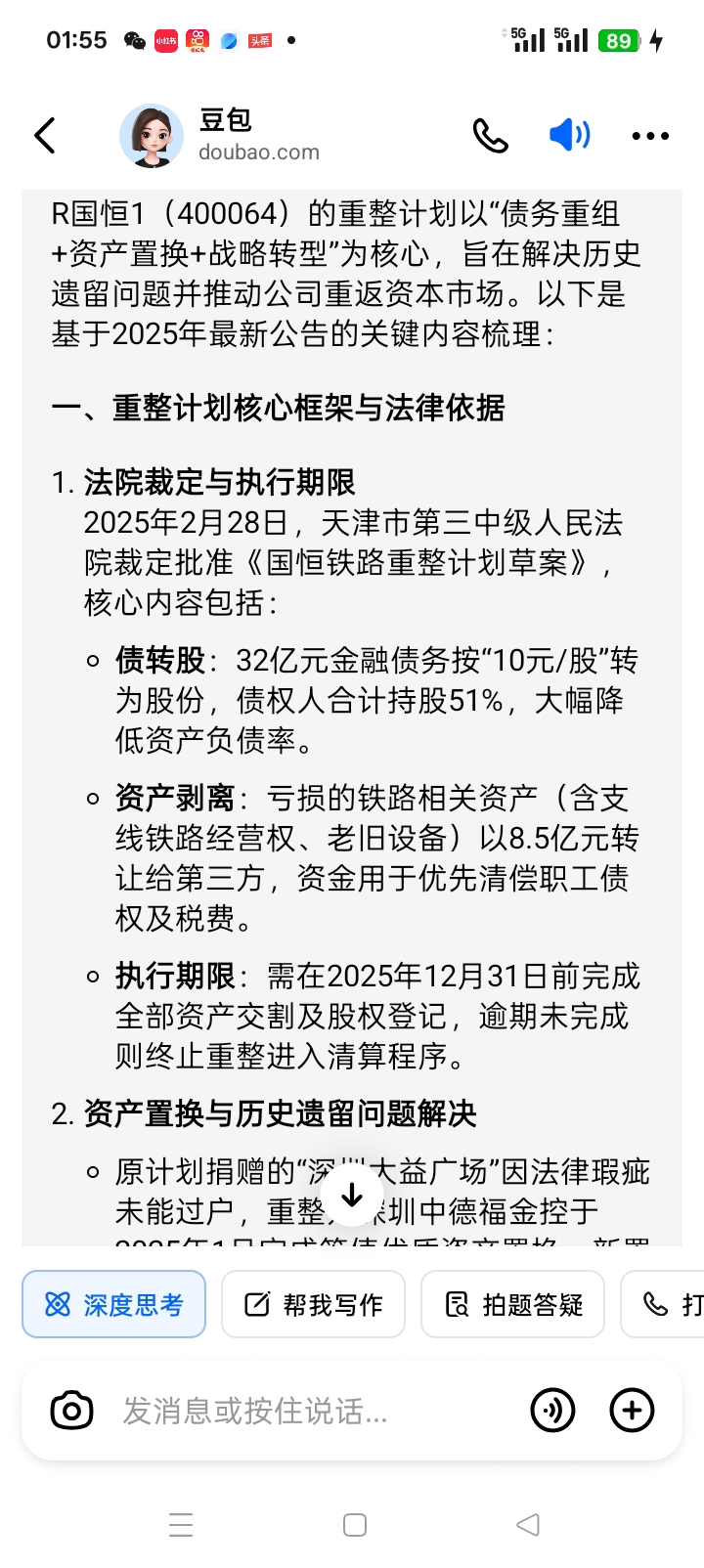 $R国恒1(SZ400064)$ 关键在于2025年12月31日前,资产整理过户情况并及时公告。