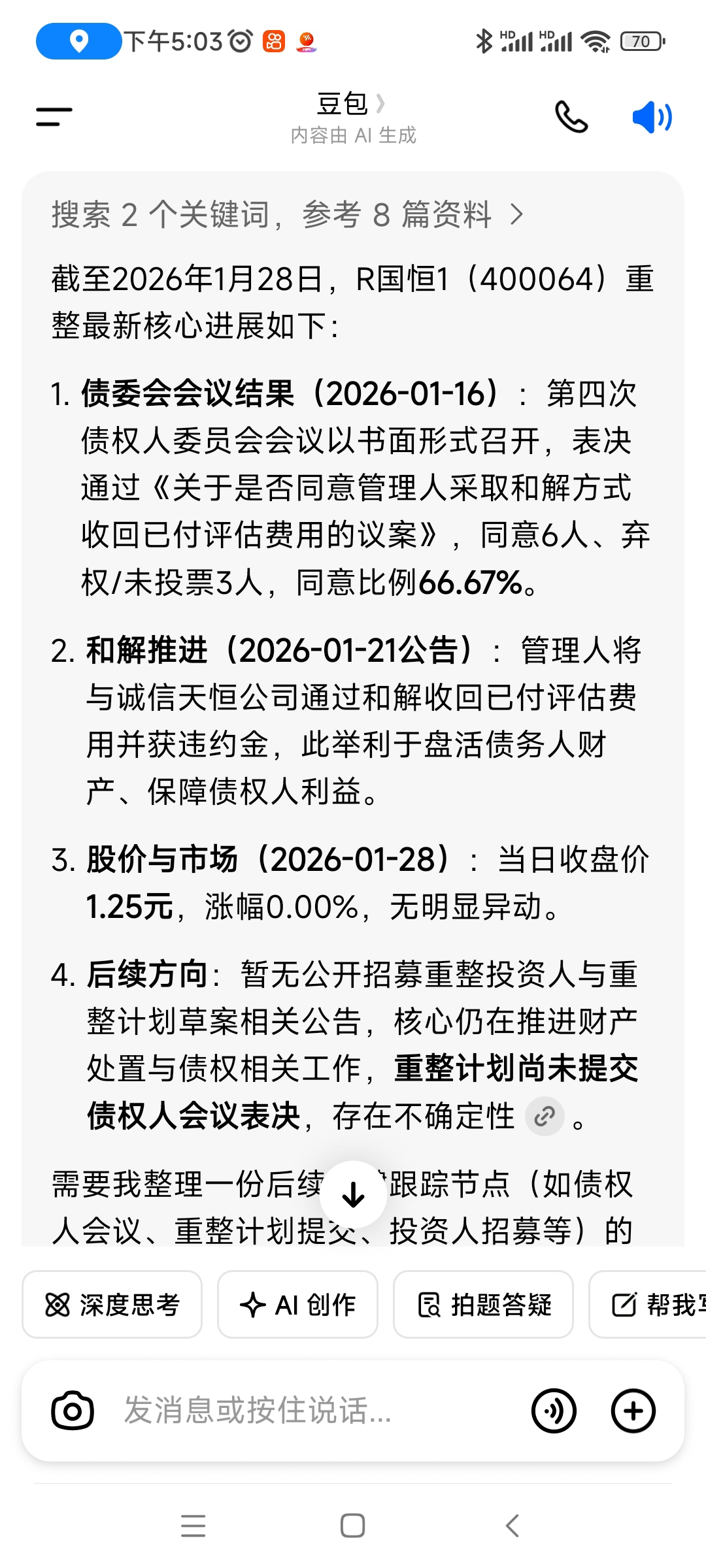 $R国恒1(SZ400064)$ 每天看一下豆包糊言乱语