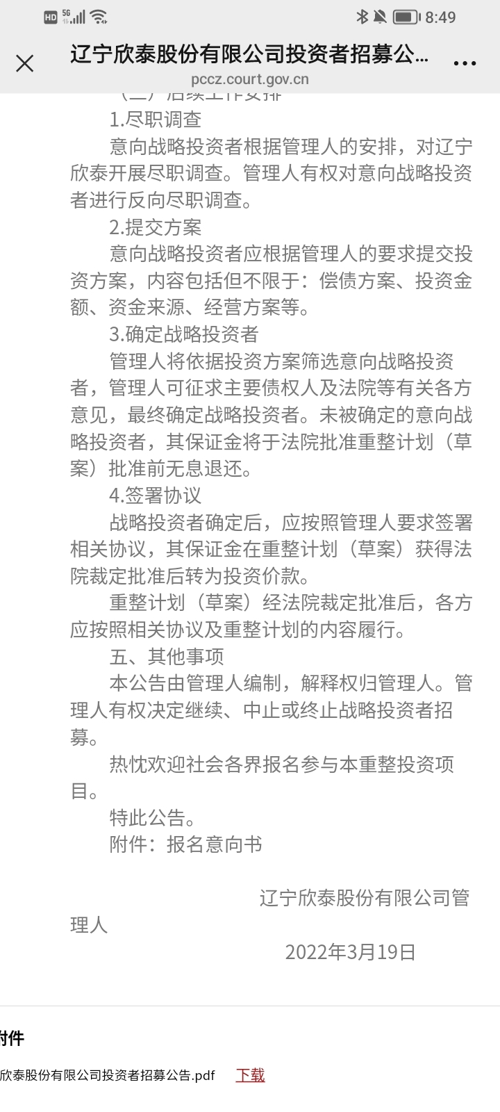 两次招募重整投资人一个是3月,一个是11月,看来没有人报名!