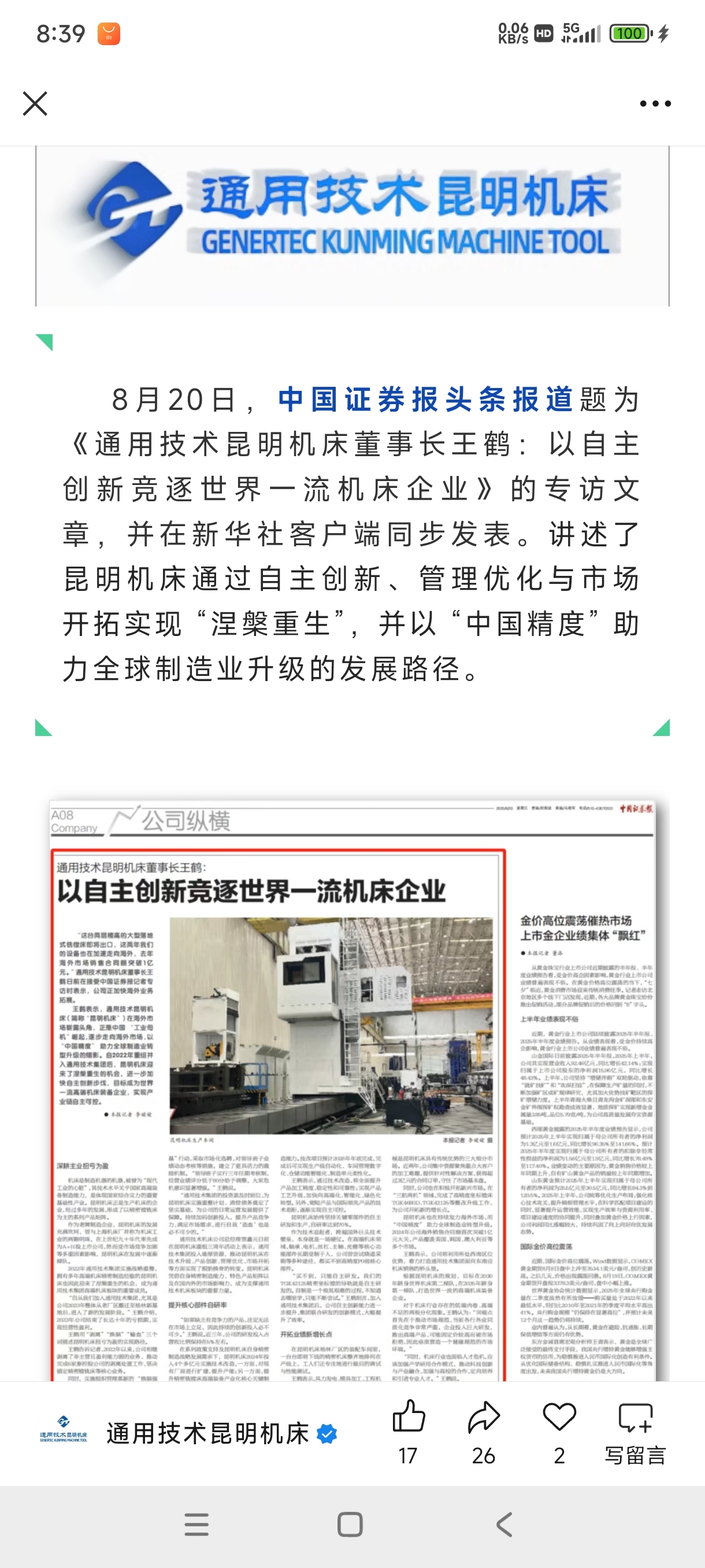喜报!通用技术昆明机床荣获“通用技术集团2025年质量先进单位”