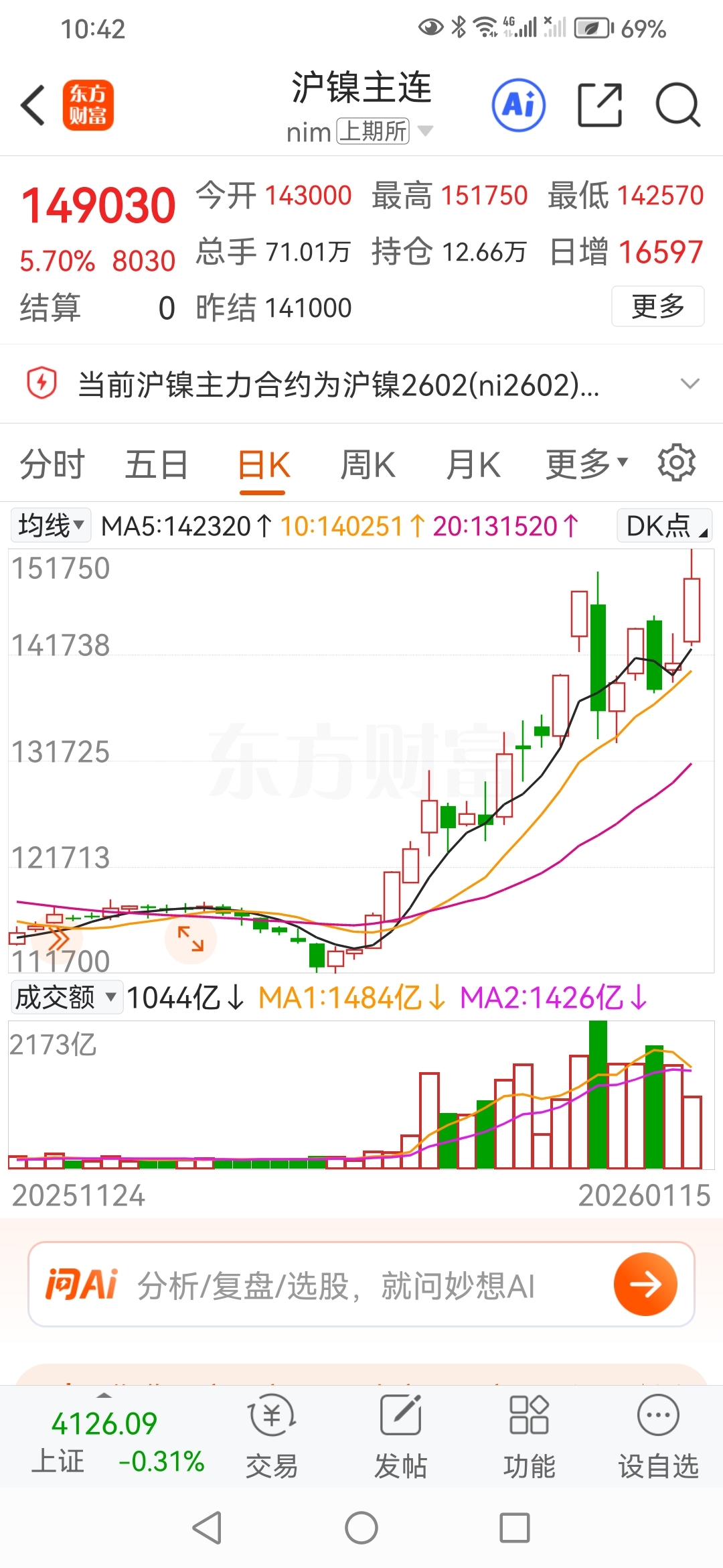 沪镍2602期货今日创一年多新髙。