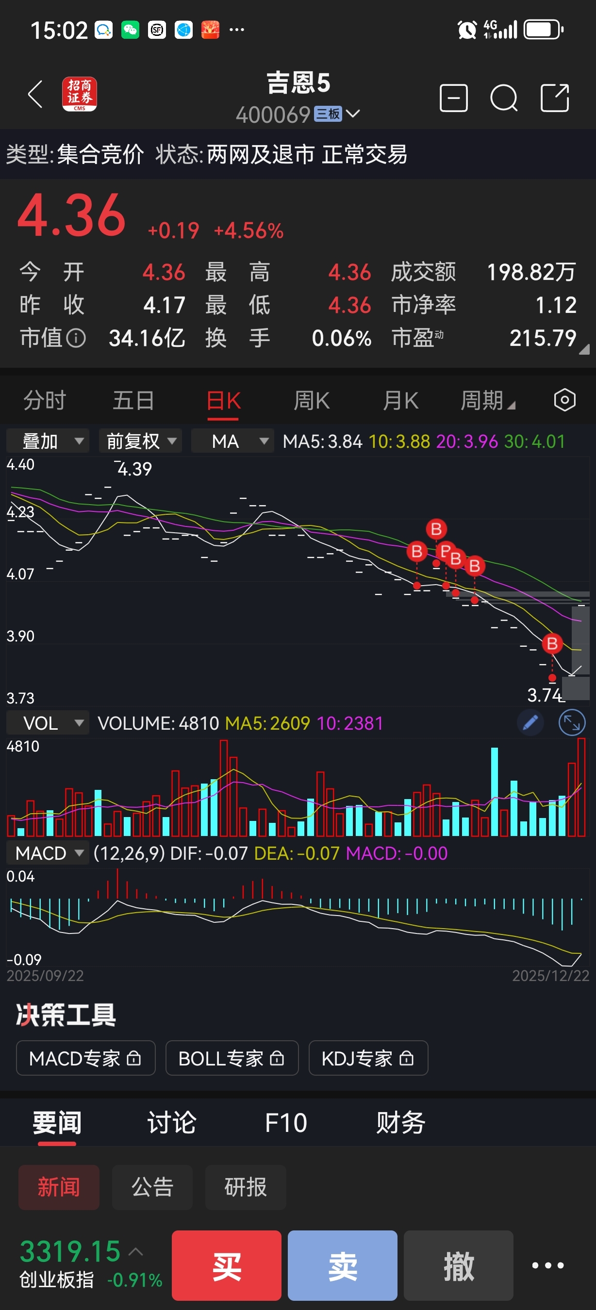 $吉恩5(SZ400069)$ 4.40元我就卖掉