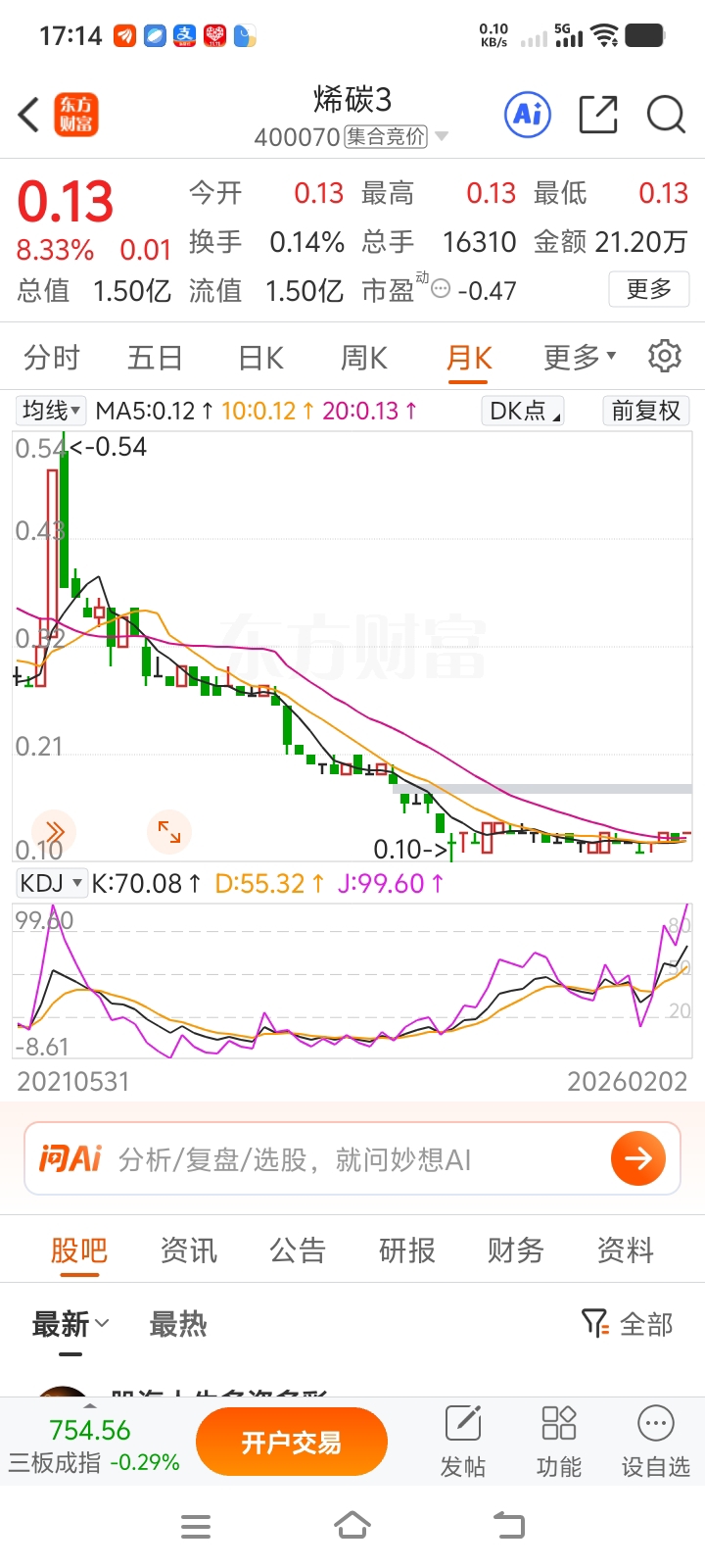 $烯碳3(SZ400070)$ 反转不是反弹,,今天买了三个老三板的股票,没有想到它真的启动了,,真的是不容易啊