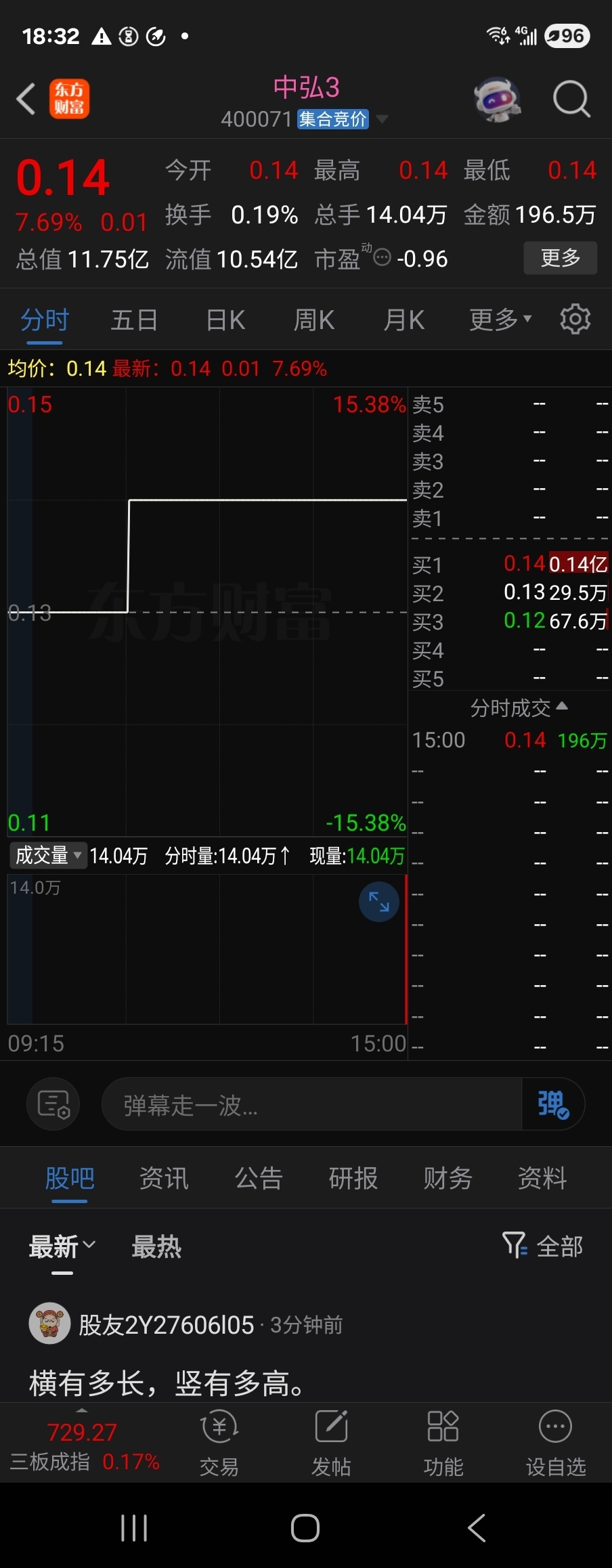 虽然从上周五收盘封单盘面看,想抄底进是渺茫的,但此时此刻仍隔夜预挂0.15抄底进