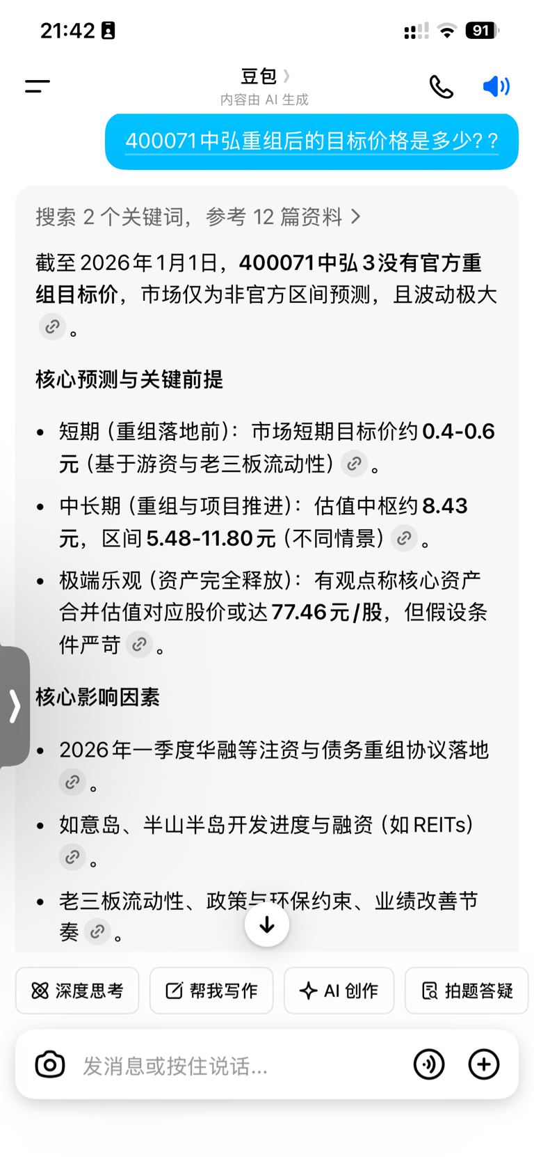 400071中弘重组后的目标价格是多少??