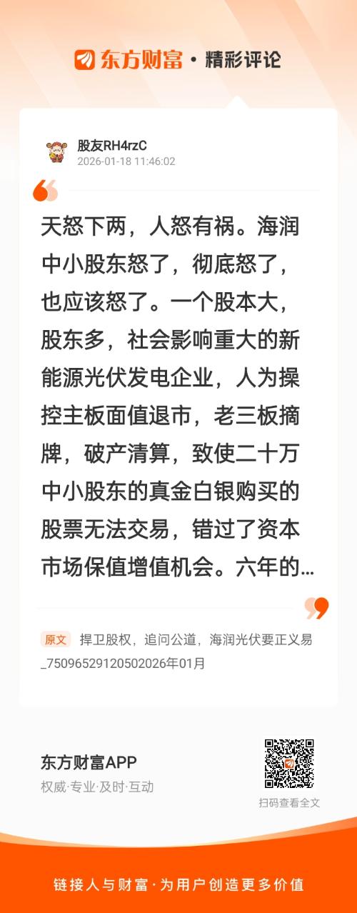 每一份股票背后,都是一个家庭的希望与积蓄。我们呼吁所有海润光伏持股同胞团结起来,凝聚24万人的力量,通过合法途径维权到底!向相关部门提交异议申请,依据法律规定向上一级法院提起上诉,共同举证裁定中的不合理之处,要求相关部门介入调查,还我们一个公道,还资本市场一片清朗!